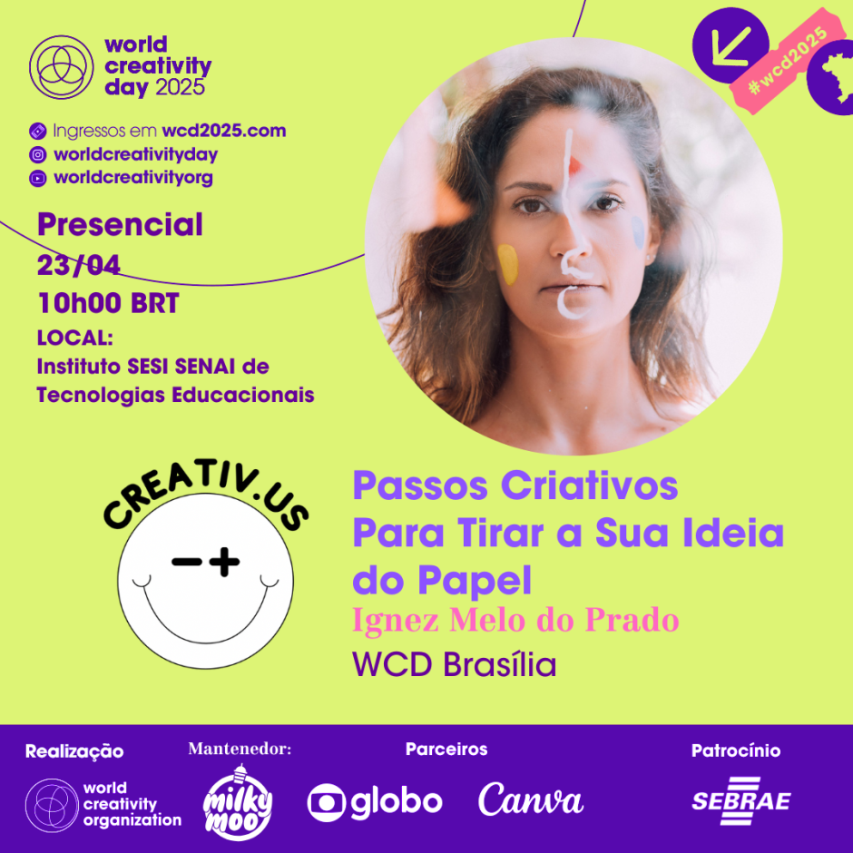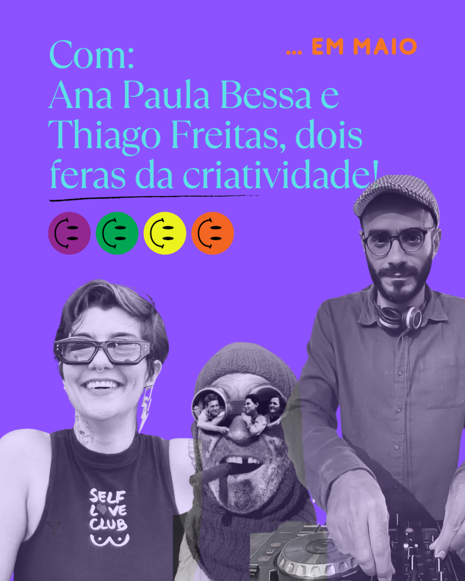 Ao final da atividade, teremos uma roda de conversa com os integrantes da Creativus - Ana Paula Bessa, Antonio Souza e Ignez Prado, com um bate papo leve sobre criatividade e seus desafios no mercado de trabalho atual!