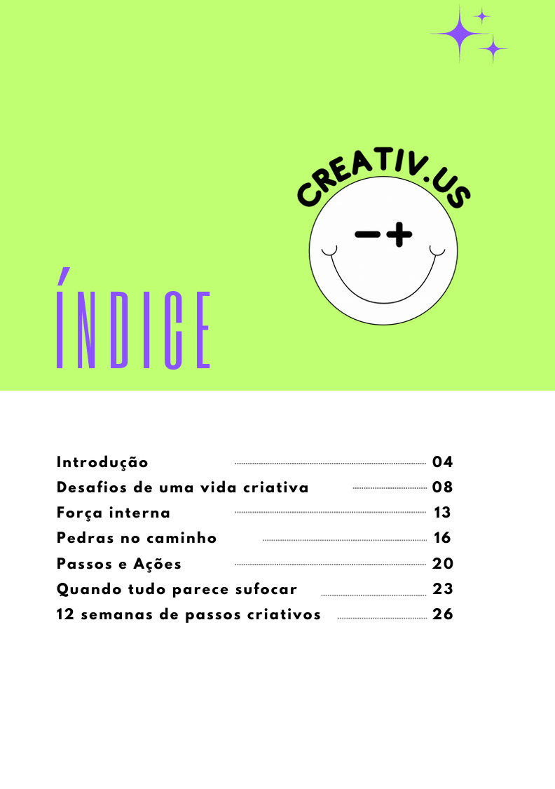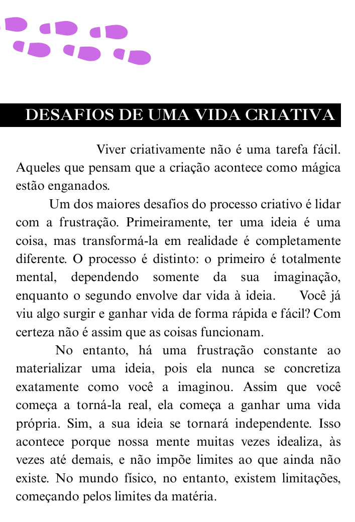 Neste e-book você irá encontrar passos para questões sobre os desafios de como levar uma vida criativa, tanto na vida pessoal, quanto na vida profissional.