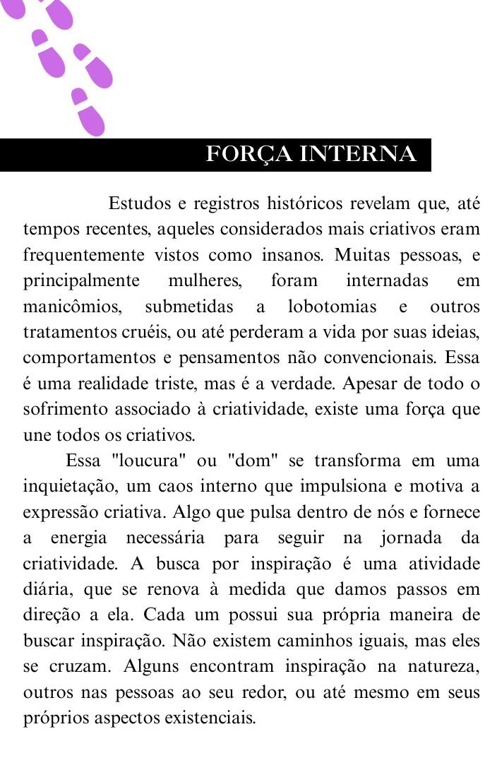 Nosso e-book “Passos Criativos: Em direção ao seu potencial criativo” foi feito para você que deseja despertar seu potencial criativo e superar as barreiras que limitam sua expressão.